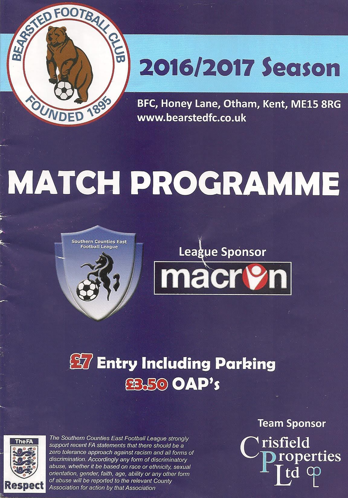 2016/17 11 Mar 2017 Bearsted (A) Southern Counties East League Premier Division 0-1 219 Programme