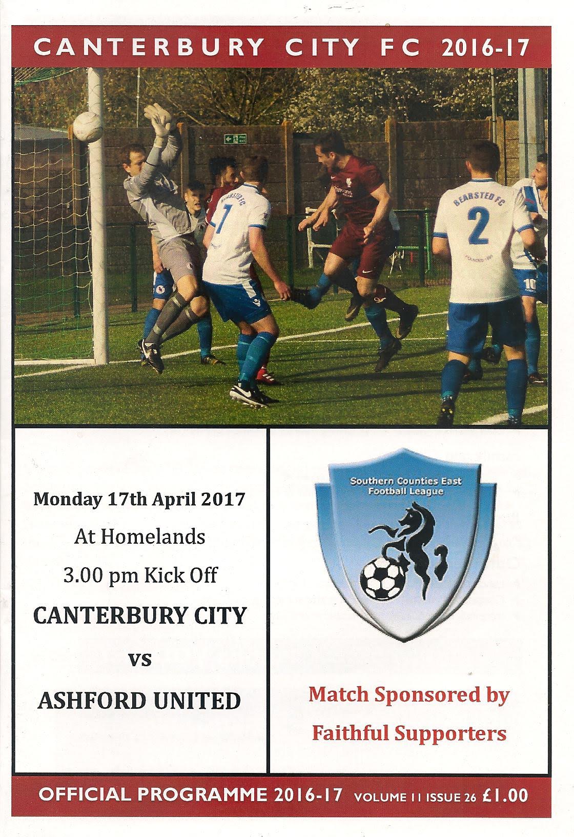 2016/17 17 Apr 2017 Canterbury City (A) Southern Counties East League Premier Division 3-1 395 Programme