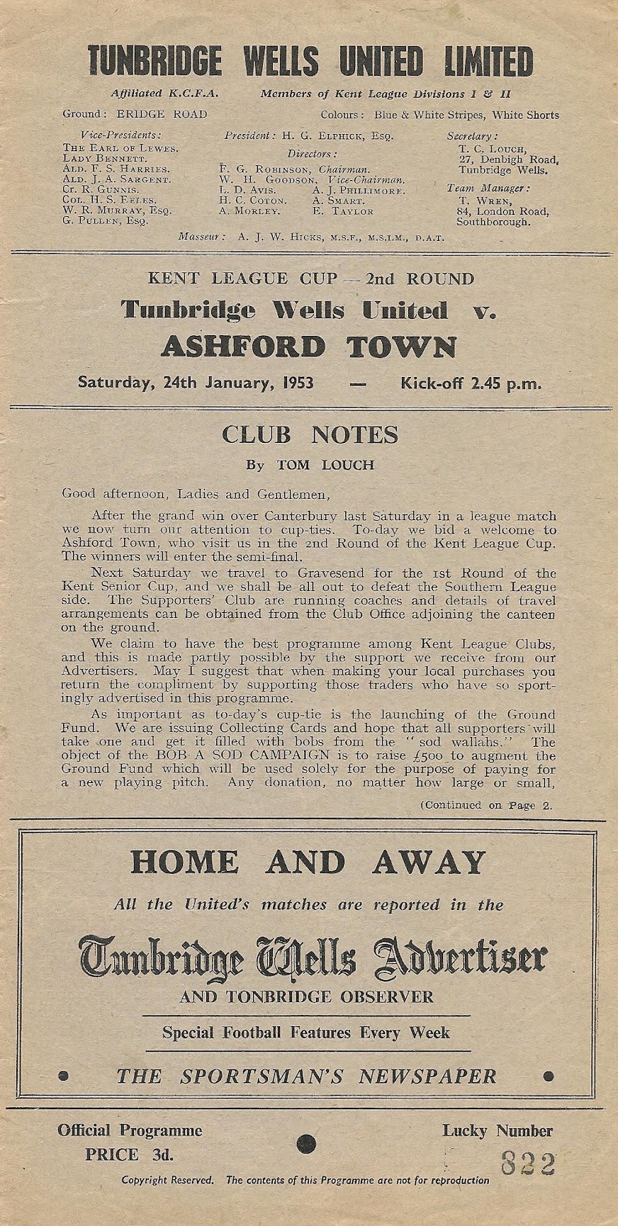 Tunbridge Wells United (A), 1952/53