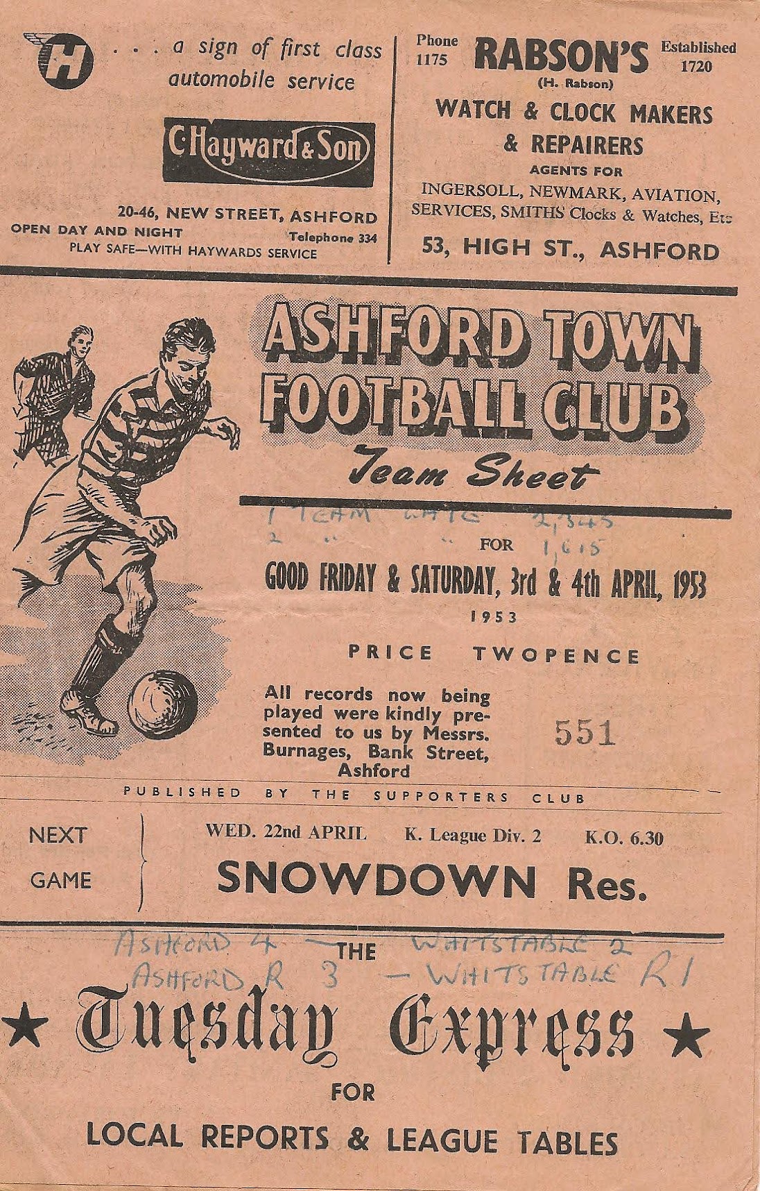 Whitstable Town (H), 1952/53