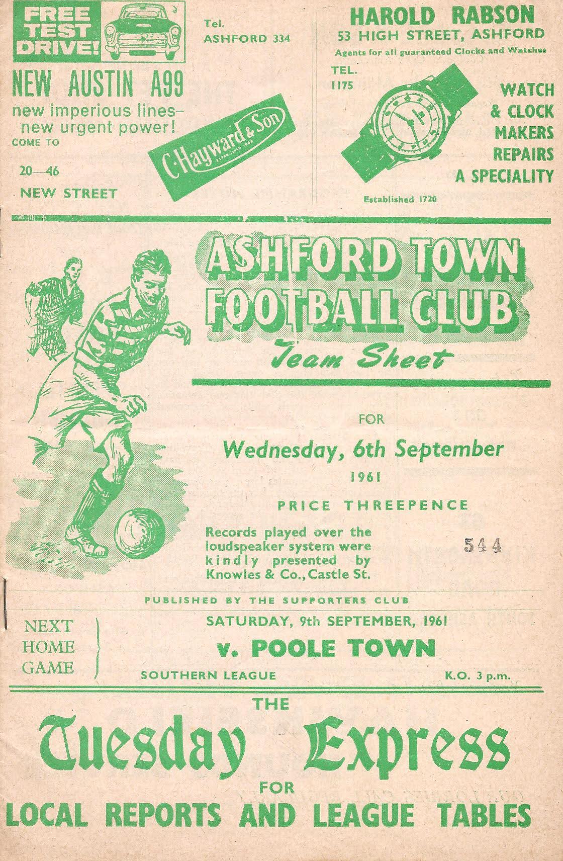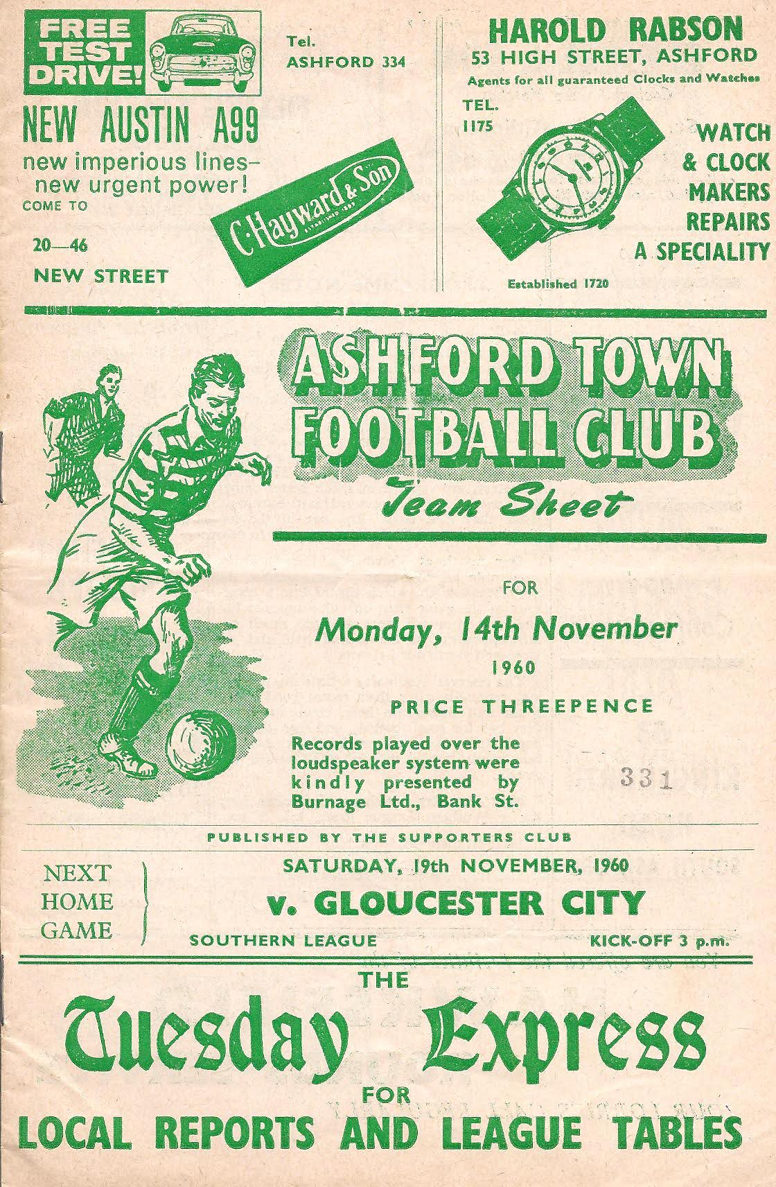 14 Nov 1960 Folkestone Town (H) 1st Round Replay 5-1 2,201 Programme