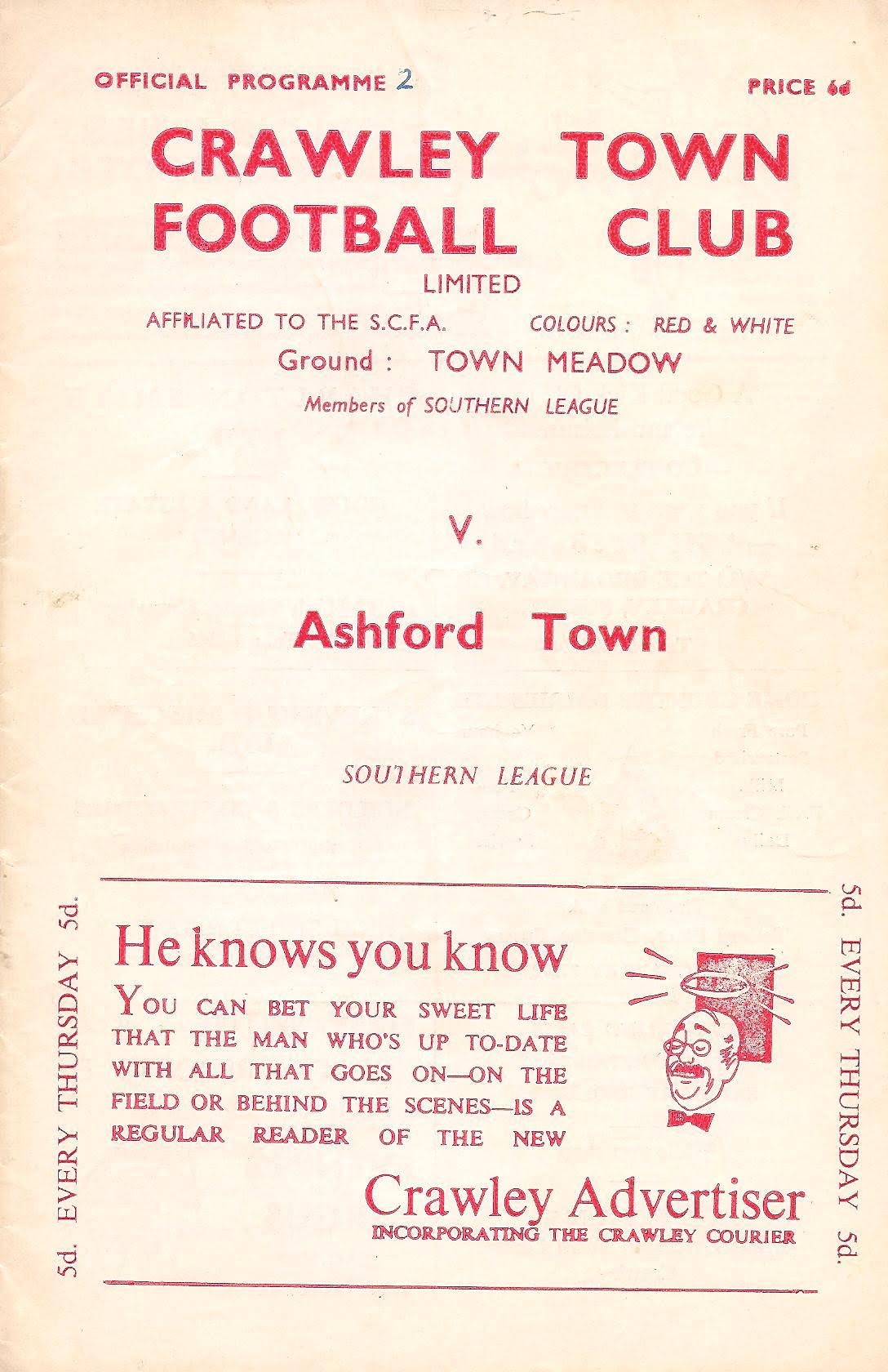 09 Sep 1964 Crawley Town (A) 1st Round 2nd Leg 0-2 950 Programme