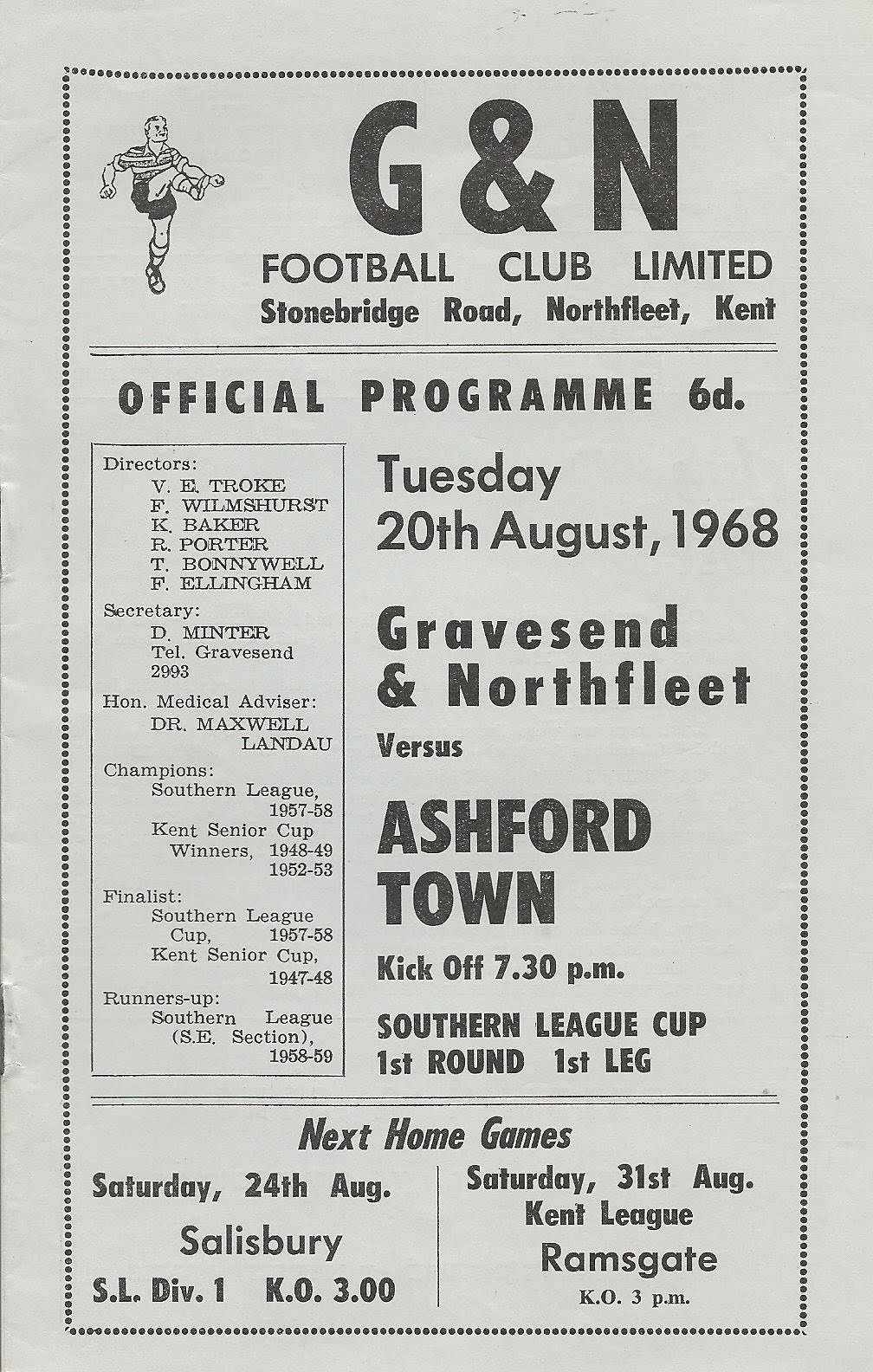 20 Aug 1968 Gravesend and Northfleet (A) 1st Round 1st Leg 0-1 660 Programme