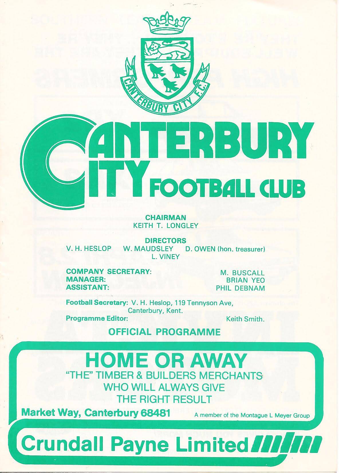 23 Aug 1972 Canterbury City (H) 1st Round 1st Leg 1-1 476 Programme