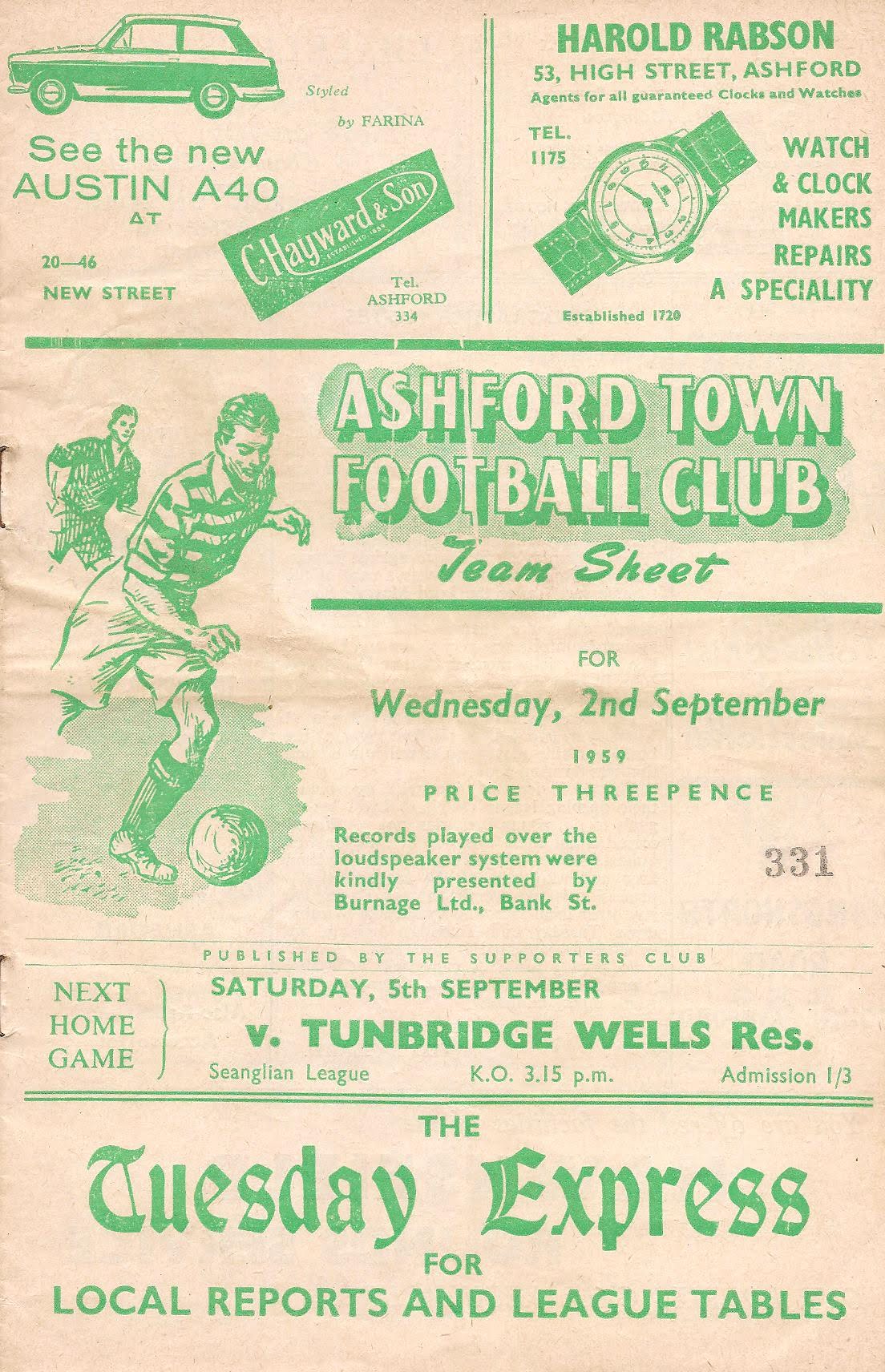 02 Sep 1959 Ramsgate Athletic (H) Qualifying Round 1st Leg 2-0 1,961 Programme