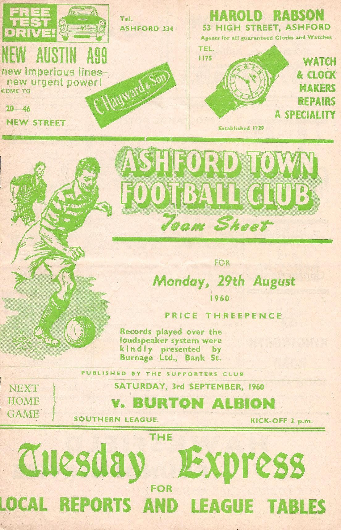 29 Aug 1960 Tonbridge (H) Qualifying Round 1st Leg 2-0 1,870 Programme