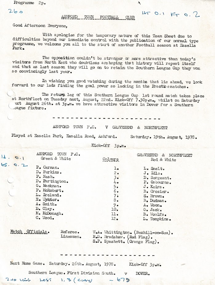 28 Aug 1968 Gravesend and Northfleet (H) 1st Round 2nd Leg 1-0 580 Programme