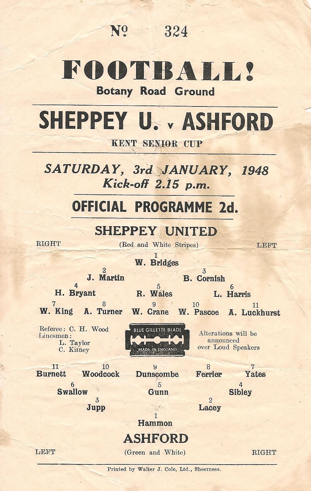 03 Jan 1948 Sheppey United (A) 1st Round 2-4 2,060 Programme