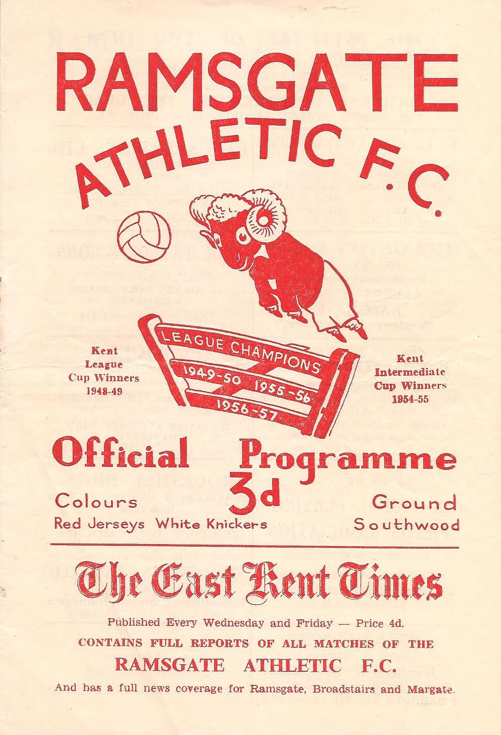 15 Feb 1958 Ramsgate Athletic (A) Quarter Final 2-4 --- Programme