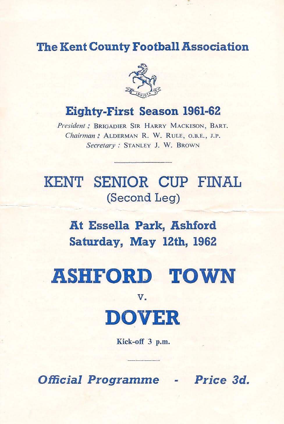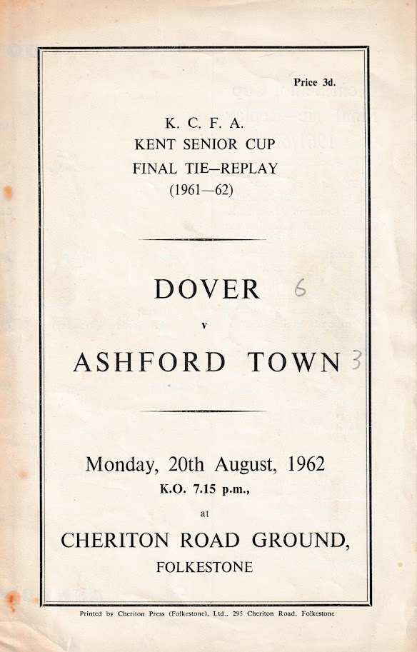 12 May 1962 Dover (H) Final - 2nd Leg 1-1 2,430 Programme