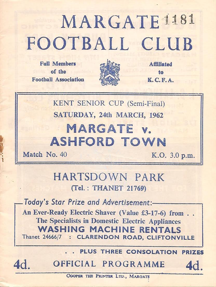 24 Mar 1962 Margate (A) Semi Final 3-0 2,414 Programme