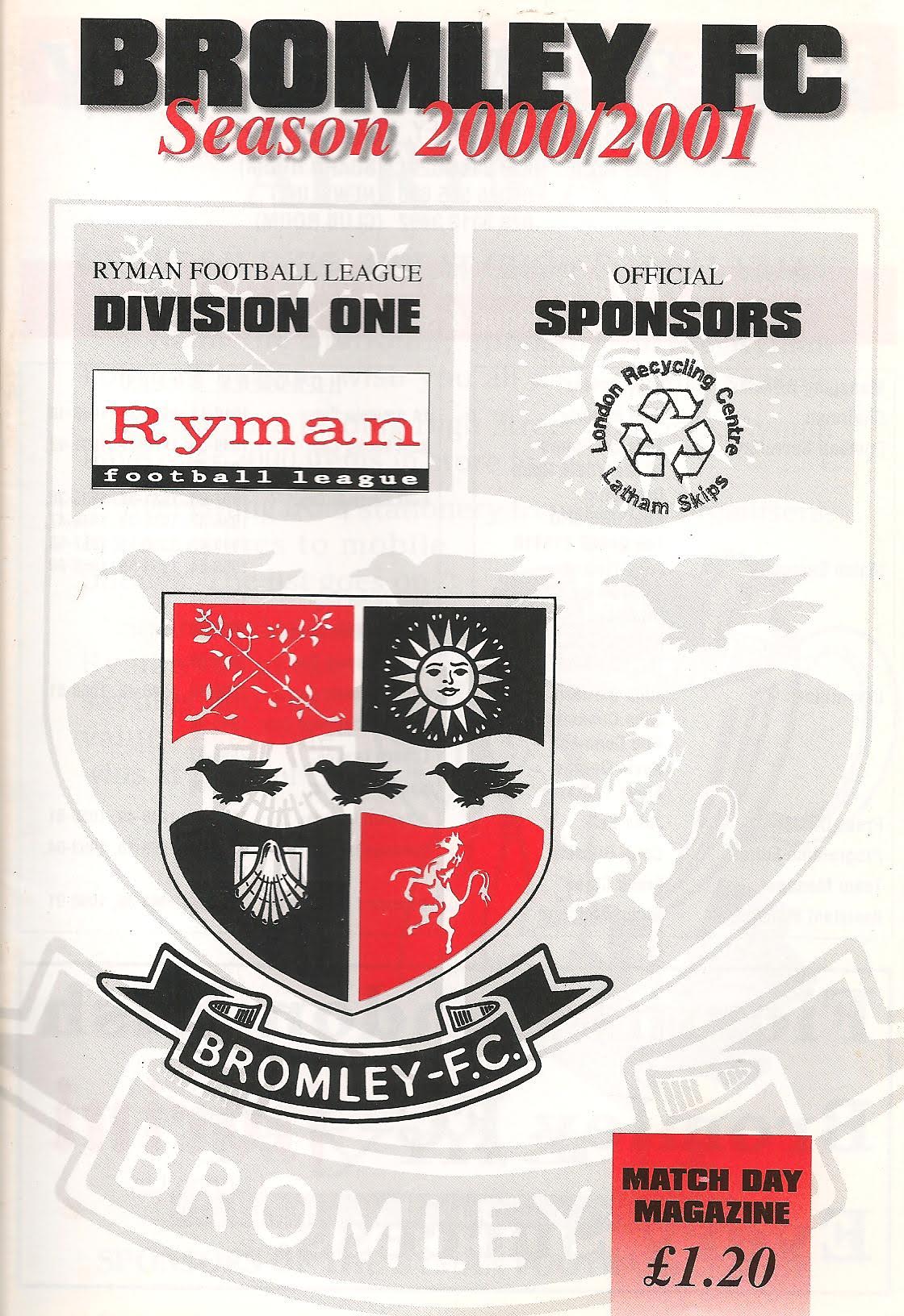 31 Oct 2000 Bromley (A) 1st Round 0-1 122 Programme