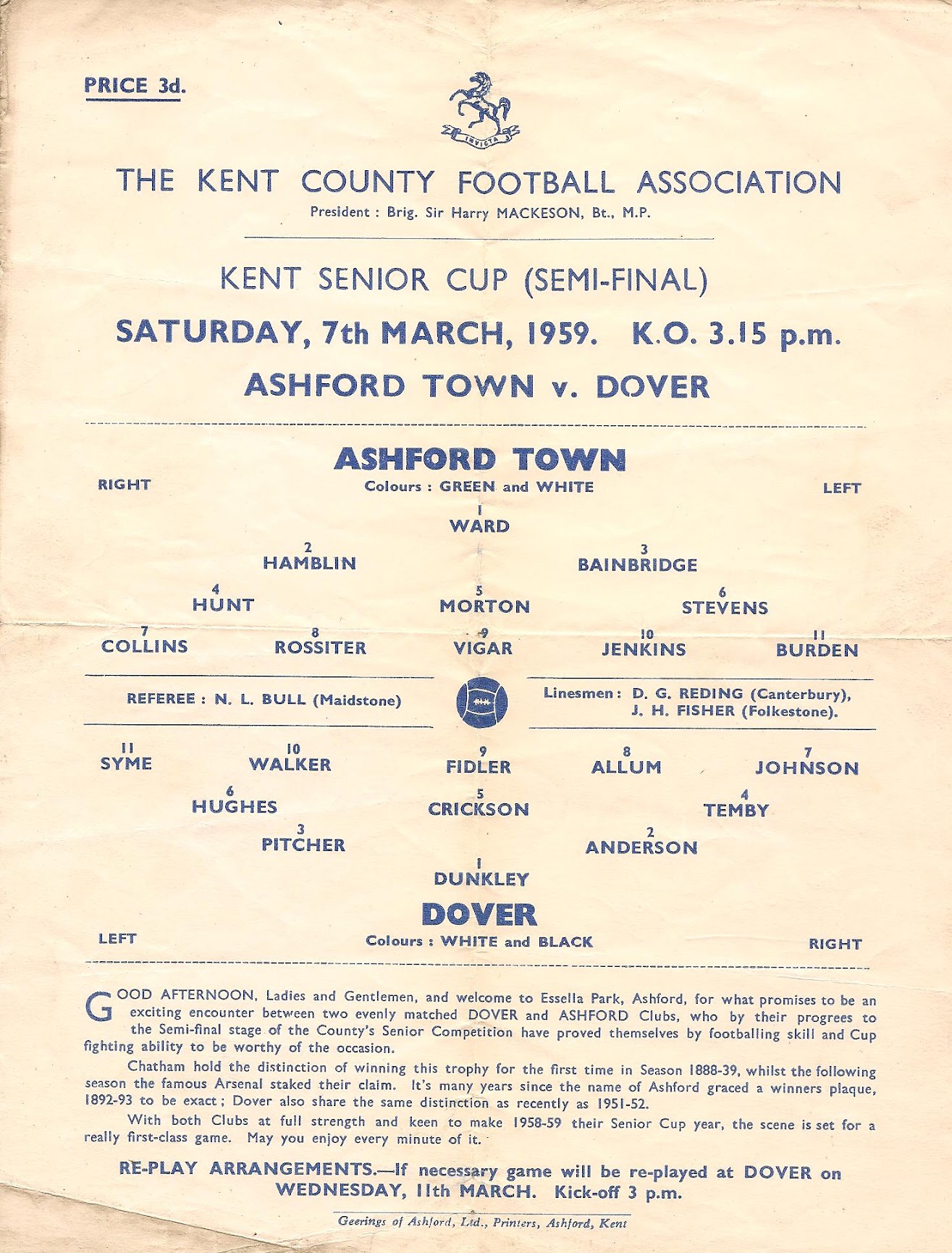 07 Mar 1959 Dover (H) Semi Final 1-0 2,242 Programme