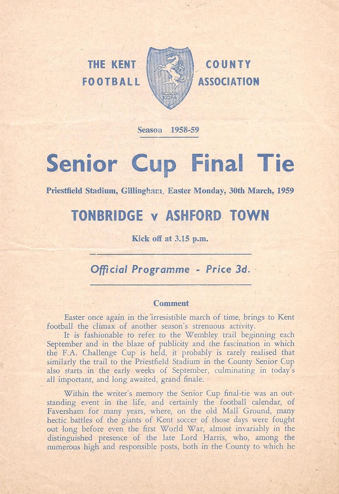30 Mar 1959 Tonbridge (N) Final 2-1 5,061 Programme