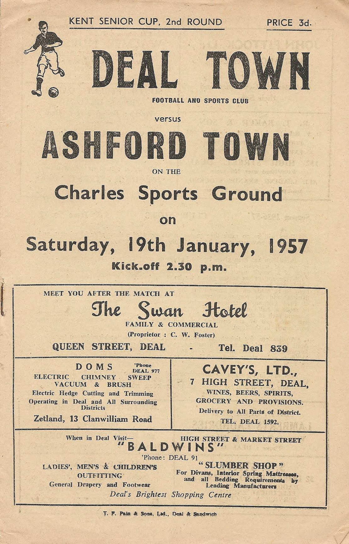 19 Jan 1957 Deal Town (A) 2nd Round 1-1 --- Programme