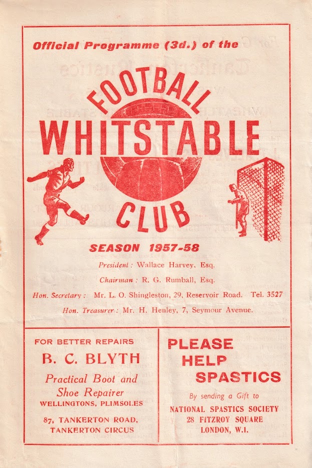 18 Jan 1958 Whitstable Town (A) 2nd Round 3-1 400 Programme