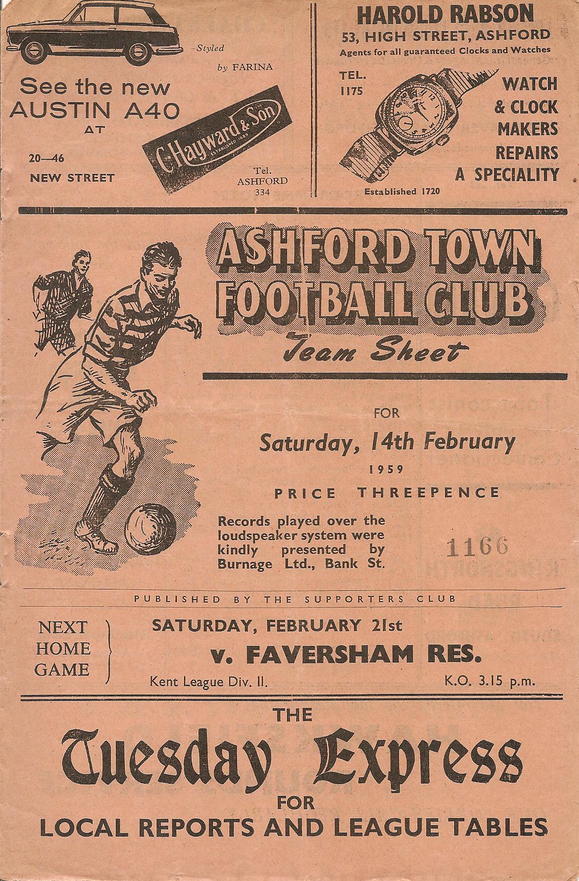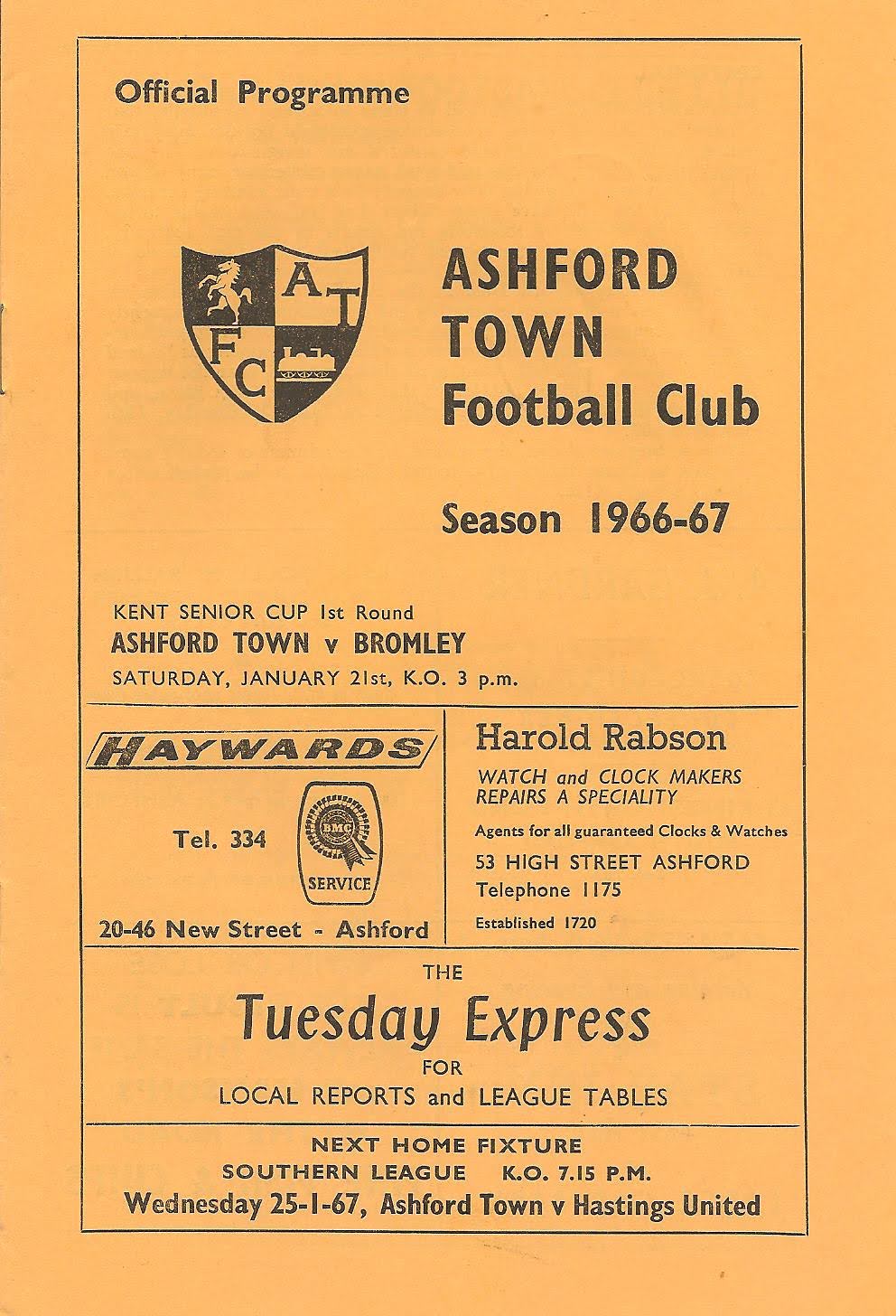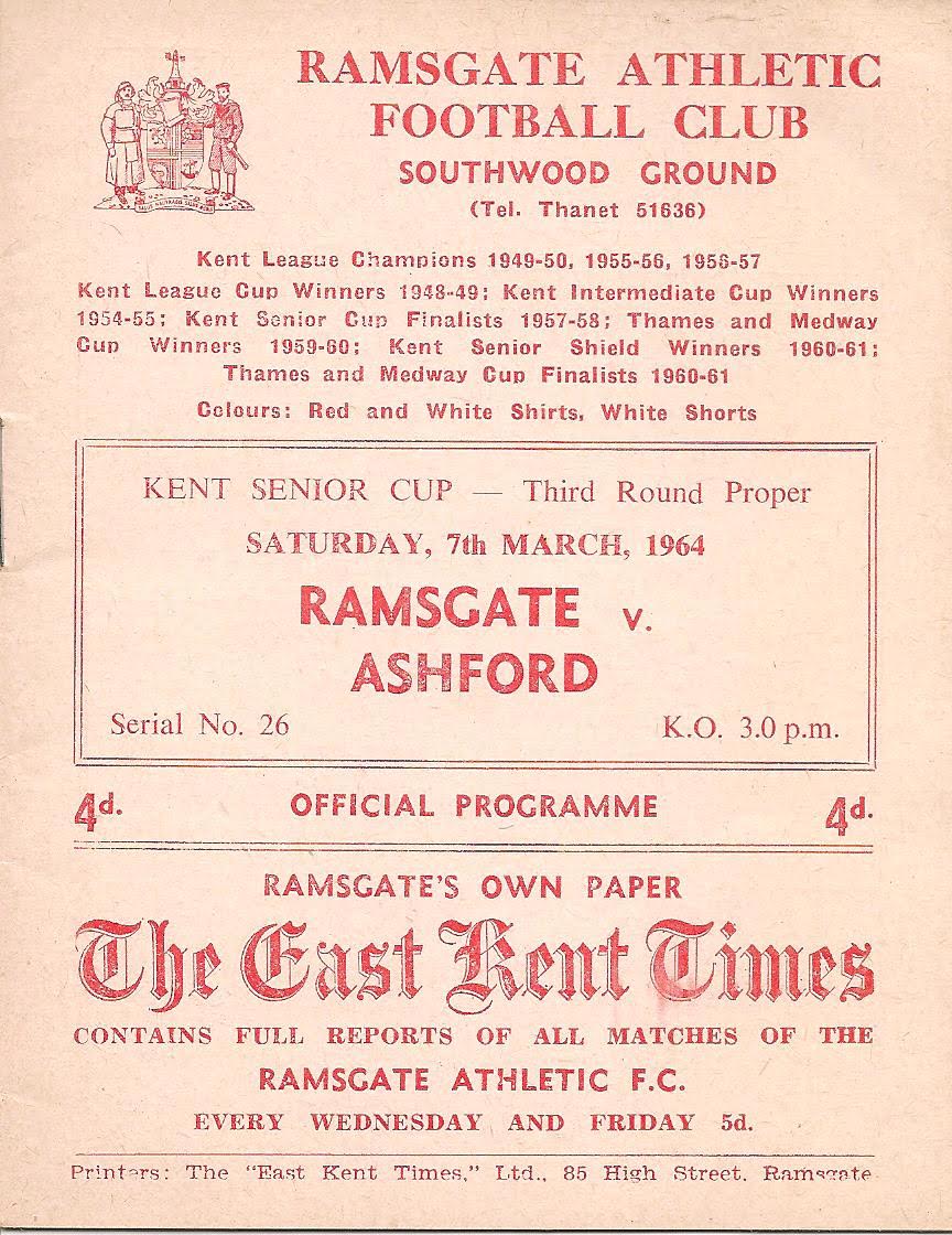 31 Jan 1959 Ramsgate Athletic (H) 2nd Round 5-0 --- Programme