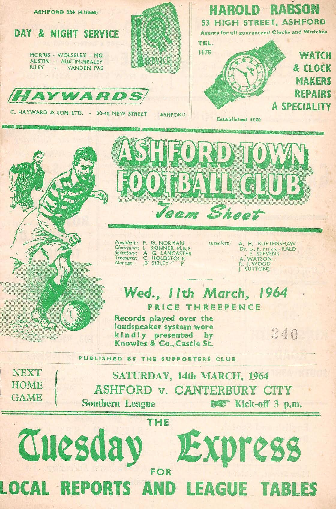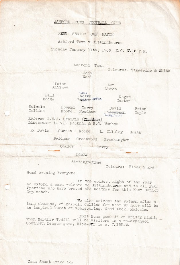 10 Feb 1962 Herne Bay (H) 2nd Round 2-0 1,180 Programme