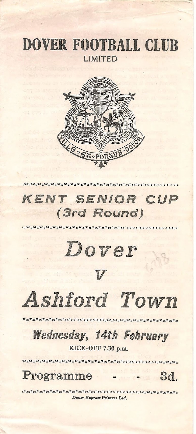 23 Apr 1962 Dover (A) Final - 1st Leg 1-1 3,783 Programme