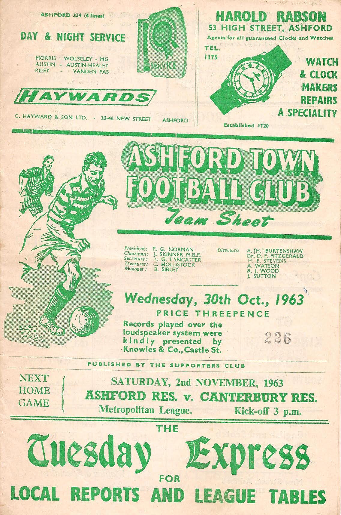 27 Nov 1963 Folkestone Town (H) Group Stage A-A 1,000 Programme