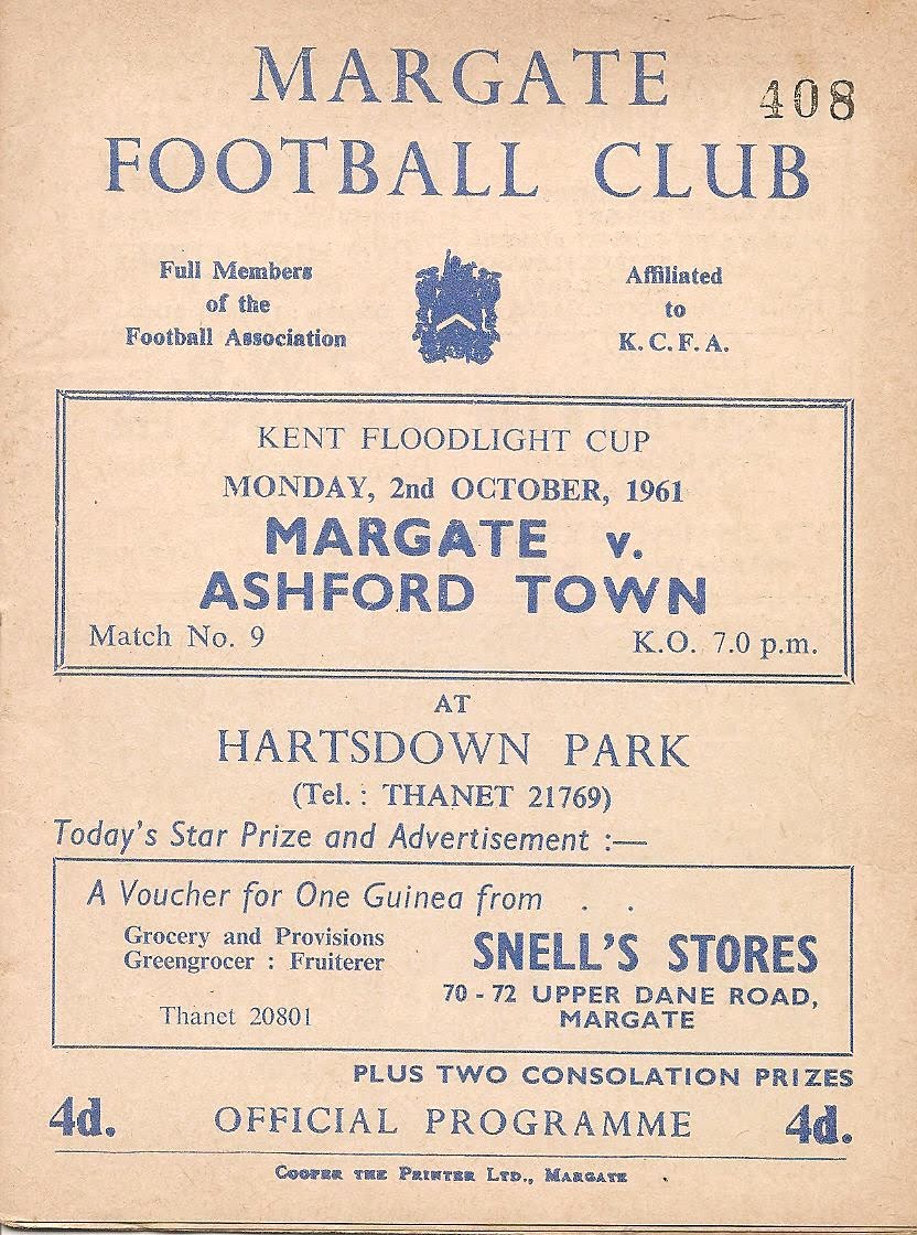 02 Oct 1961 Margate (A) Group Stage 1-1 2,304 Programme