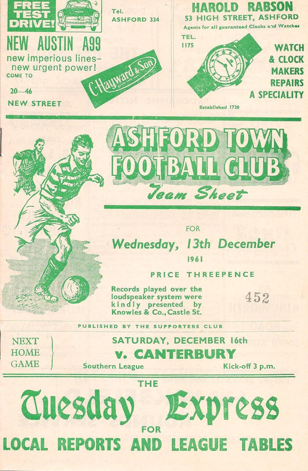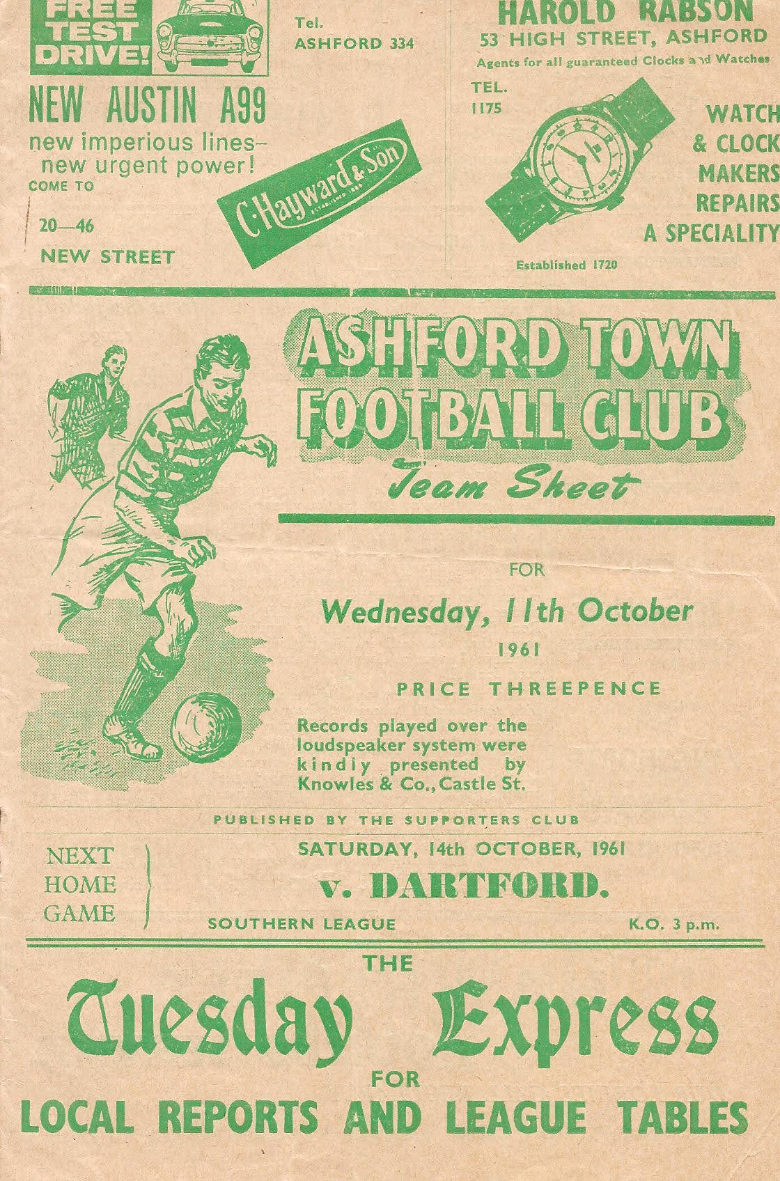 11 Oct 1961 Folkestone Town (H) Group Stage 3-1 2,266 Programme