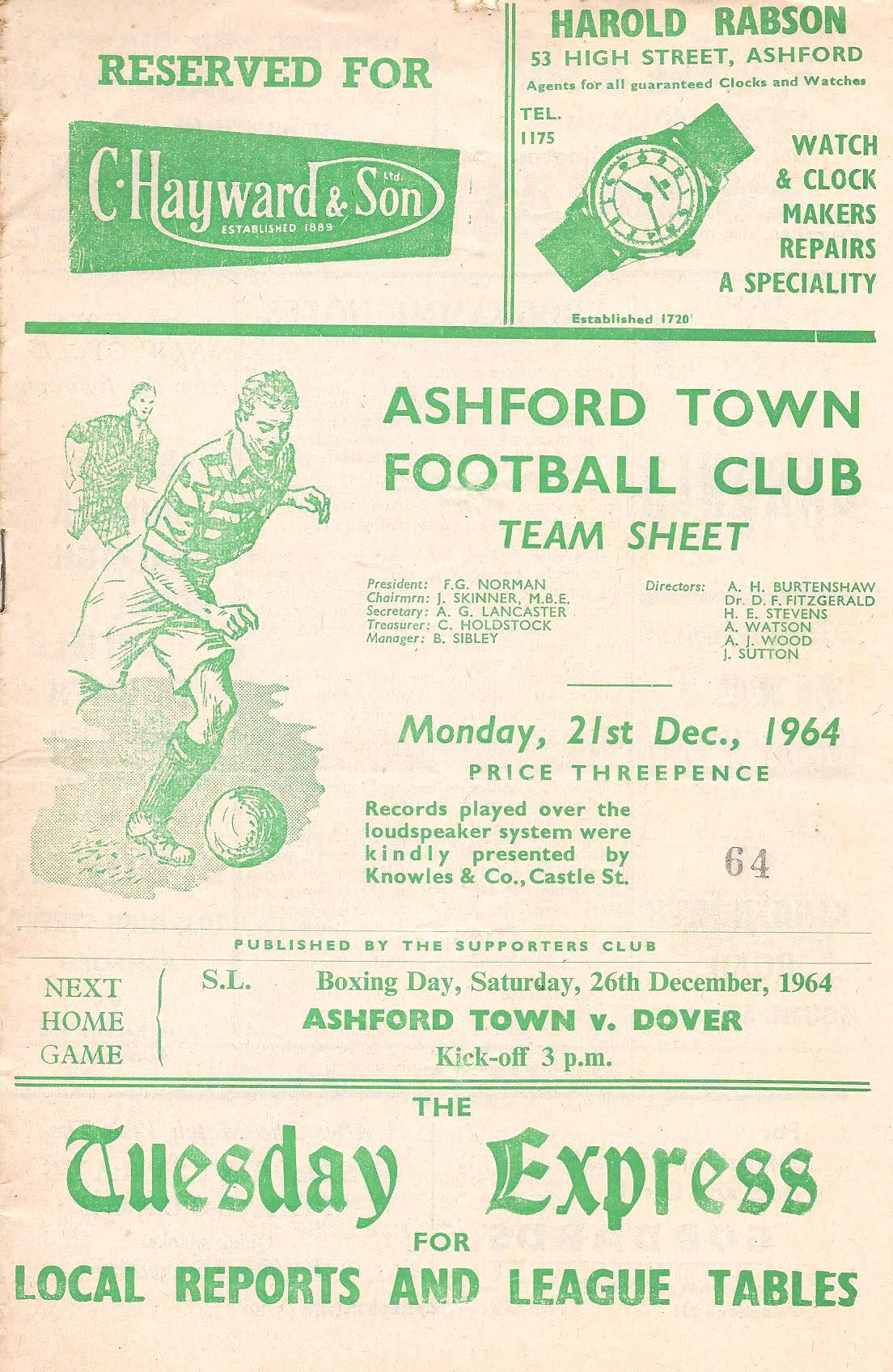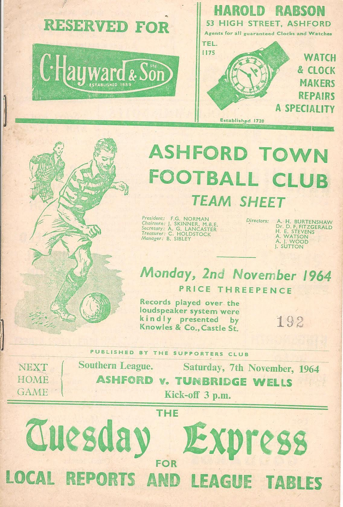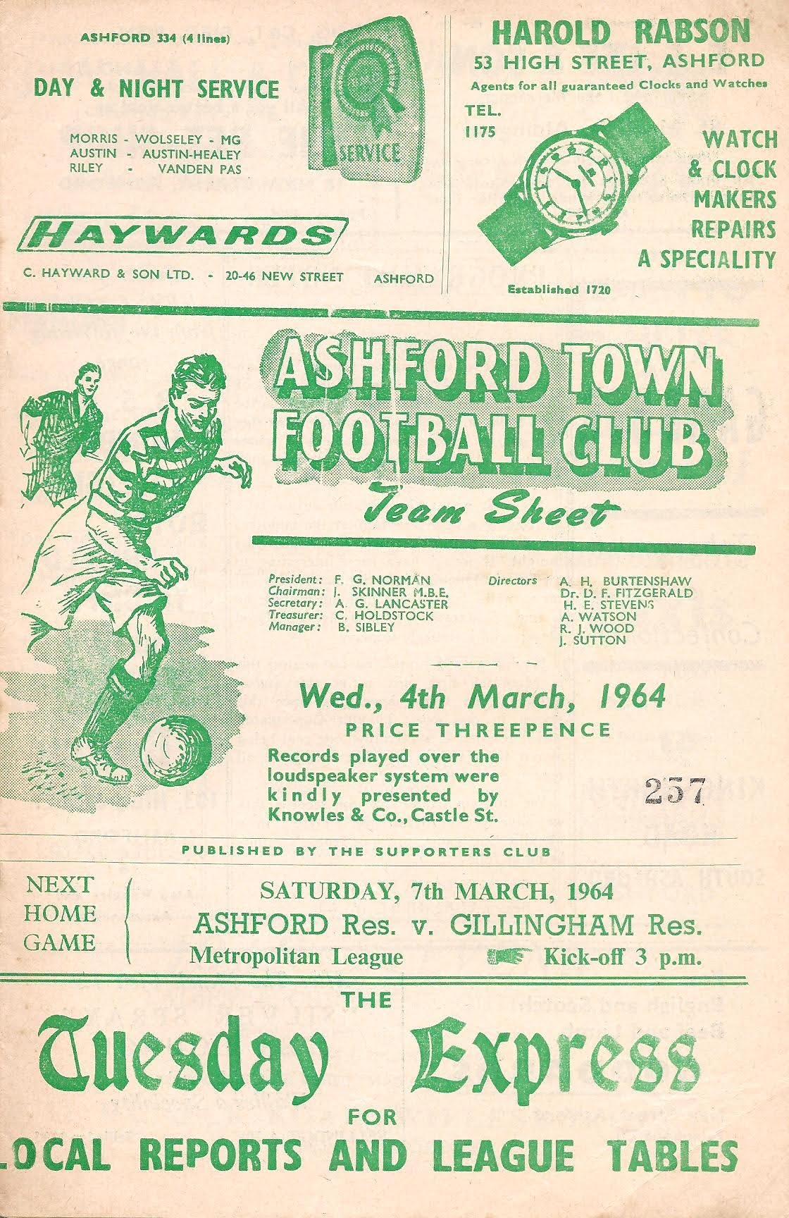 13 Apr 1964 Folkestone Town (H) Group Stage 2-1 449 Programme