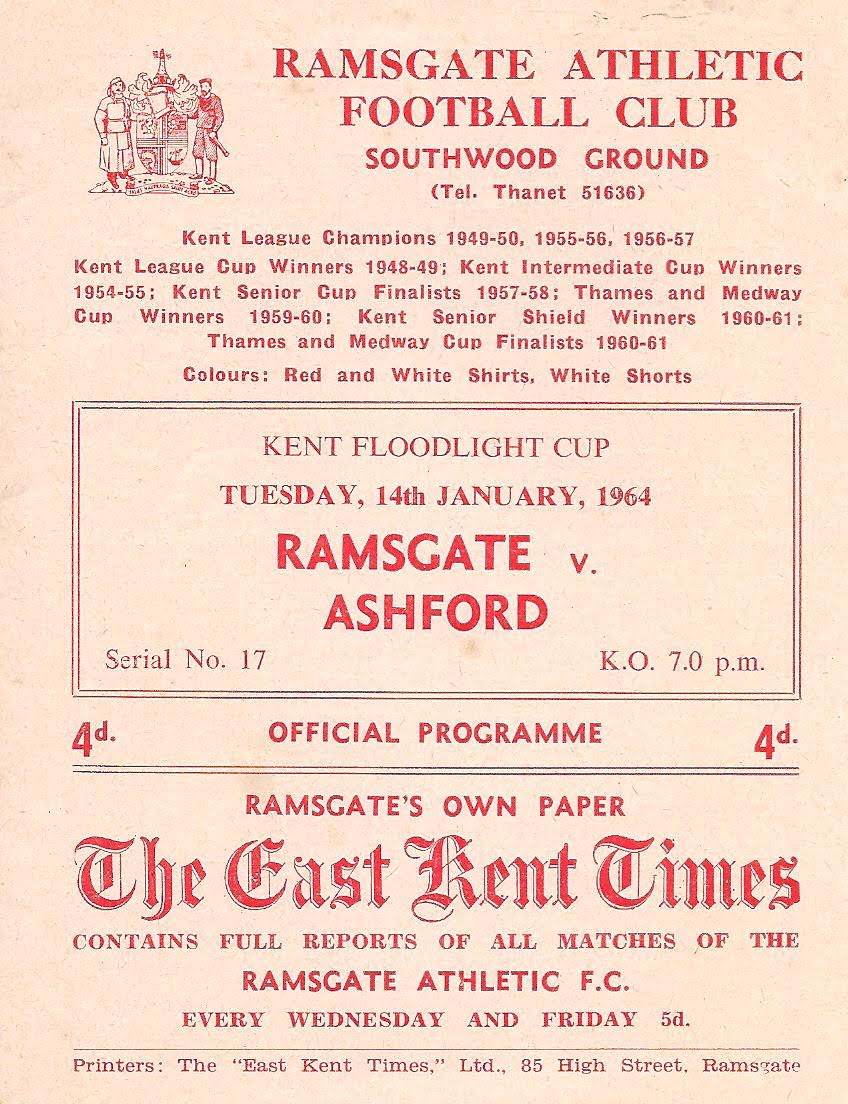 14 Jan 1964 Ramsgate Athletic (A) Group Stage 0-2 --- Programme