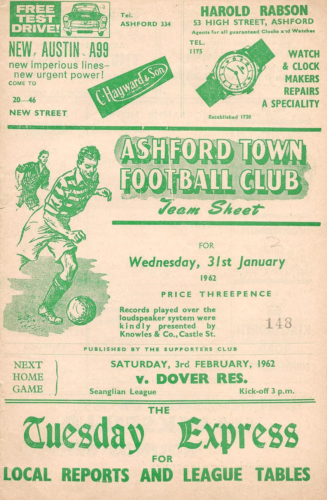 27 Feb 1962 Folkestone Town (A) Group Stage 2-0 596 Programme