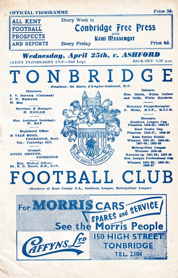 18 Apr 1962 Tonbridge (H) Final - 1st Leg 1-1 1,253 Programme