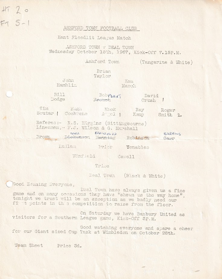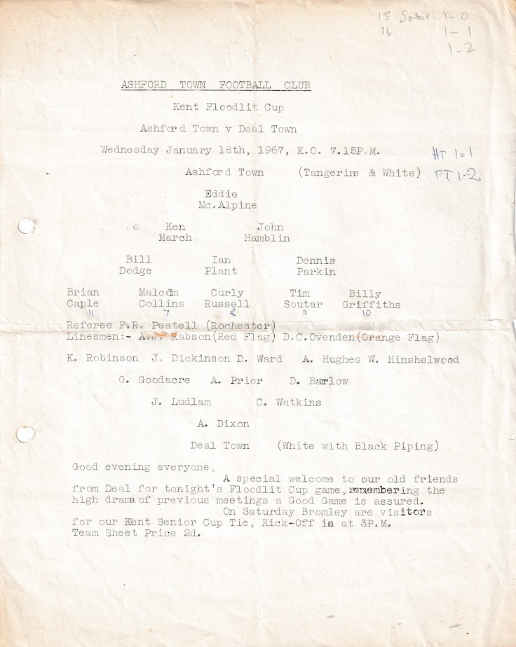 22 Nov 1966 Deal Town (A) Group Stage 5-1 150 Programme