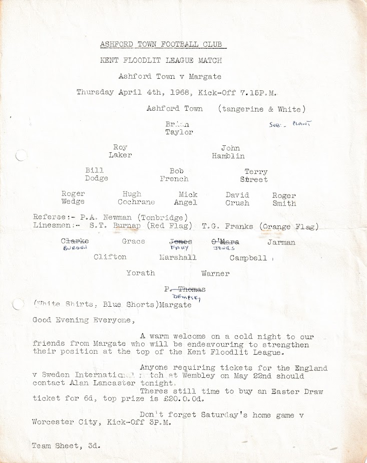 04 Apr 1968 Margate (H) Group Stage 0-6 237 Programme