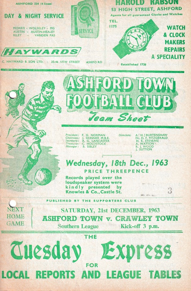 18 Dec 1963 Ramsgate Athletic (H) Group Stage 4-1 400 Programme