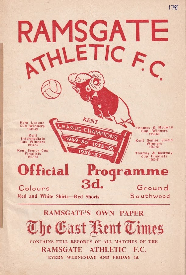 10 Oct 1960 Ramsgate Athletic (H) Group Stage 3-2 1,000 Programme