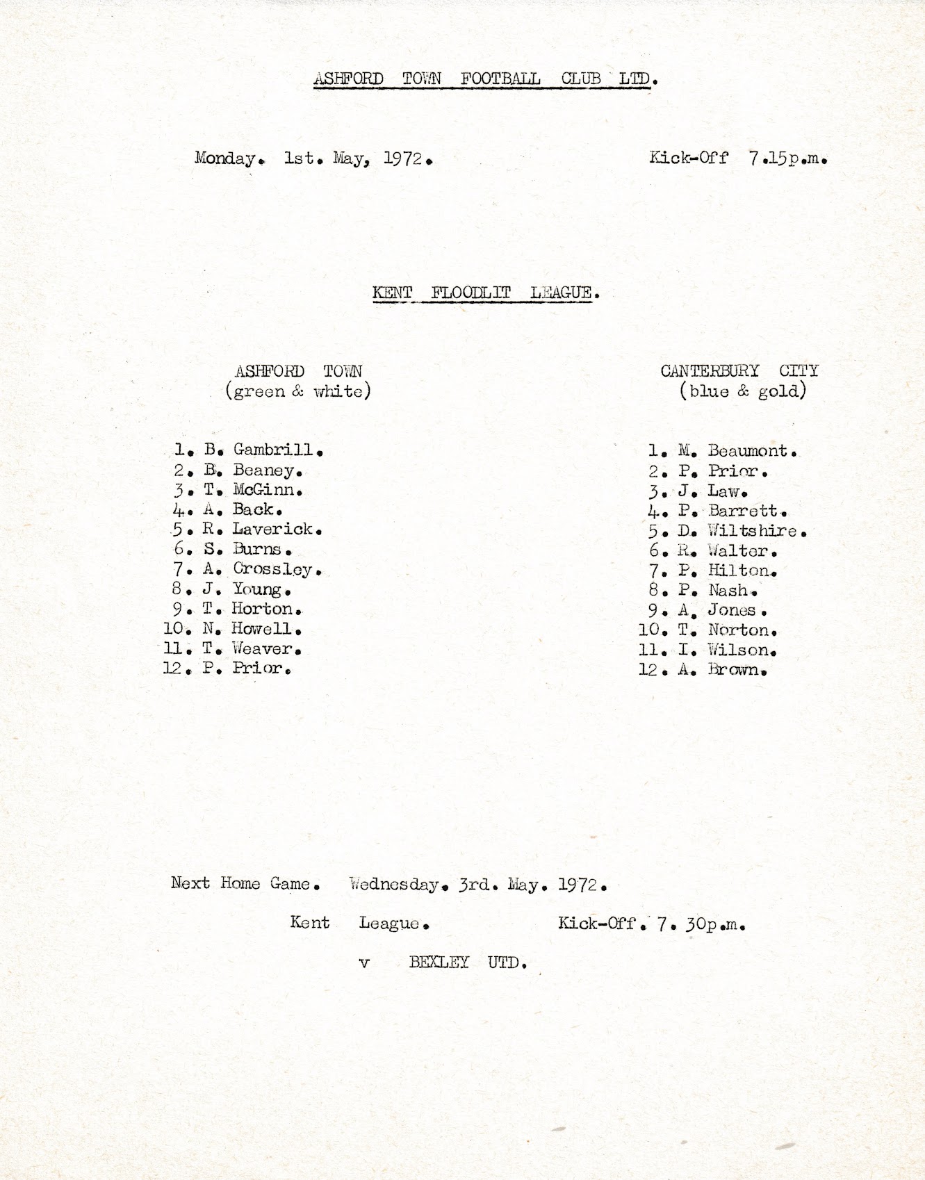 01 May 1972 Canterbury City (H) Group Stage 2-0 89 Programme