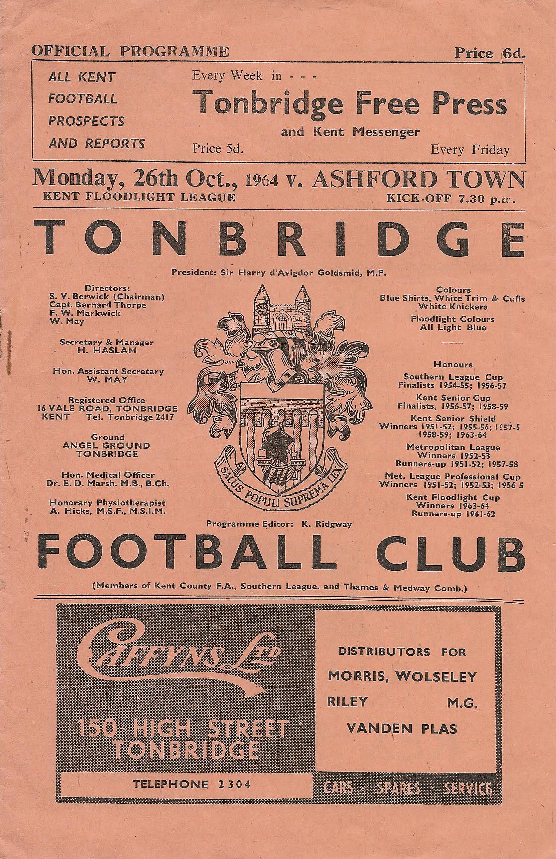 26 Oct 1964 Tonbridge (A) Group Stage 2-2 1,231 Programme