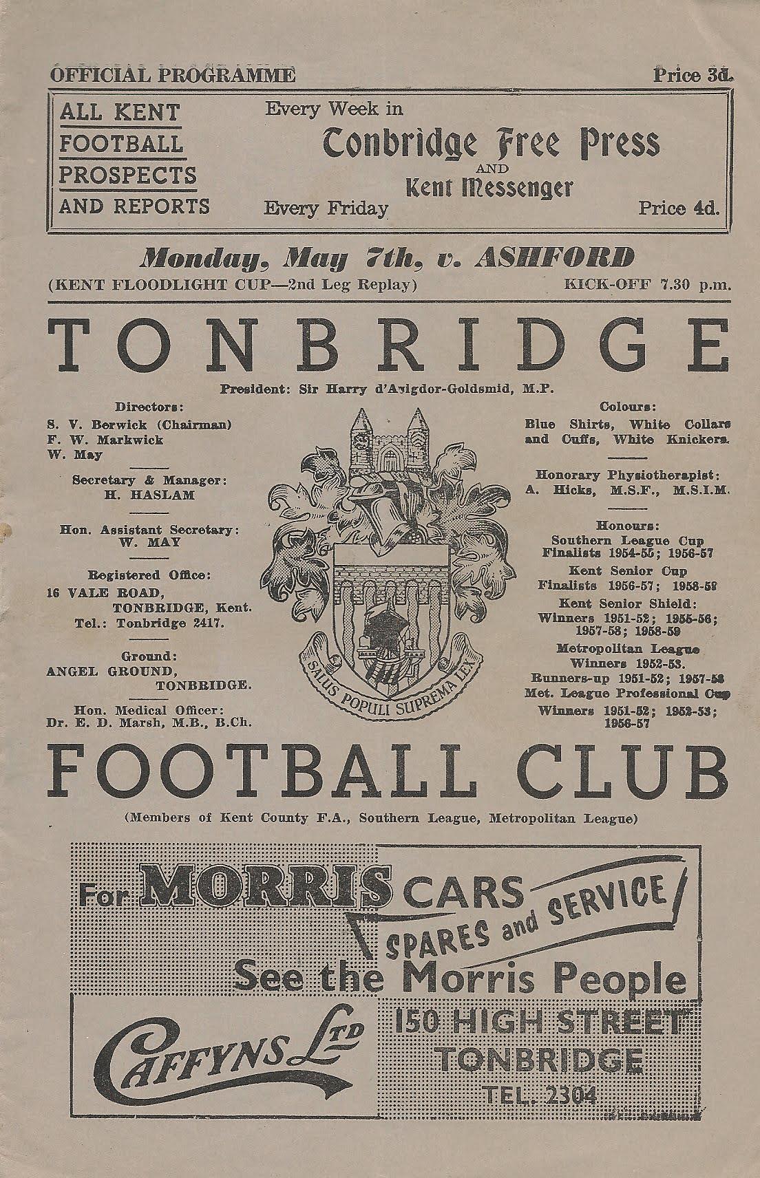 07 May 1962 Tonbridge (A) Final - Replay 2-1 1,707 Programme