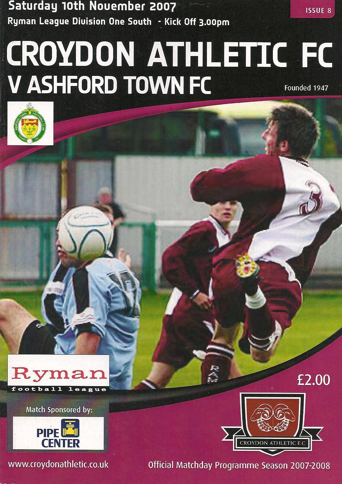 2007/08 10 Nov 2007 Croydon Athletic (A) Isthmian Division One South 1-2 112 Programme