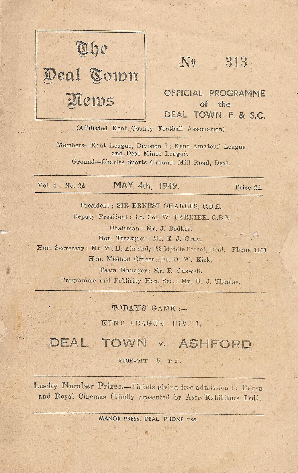1948/49 04 May 1949 Deal Town (A) Kent League Division 1 3-0 --- Programme