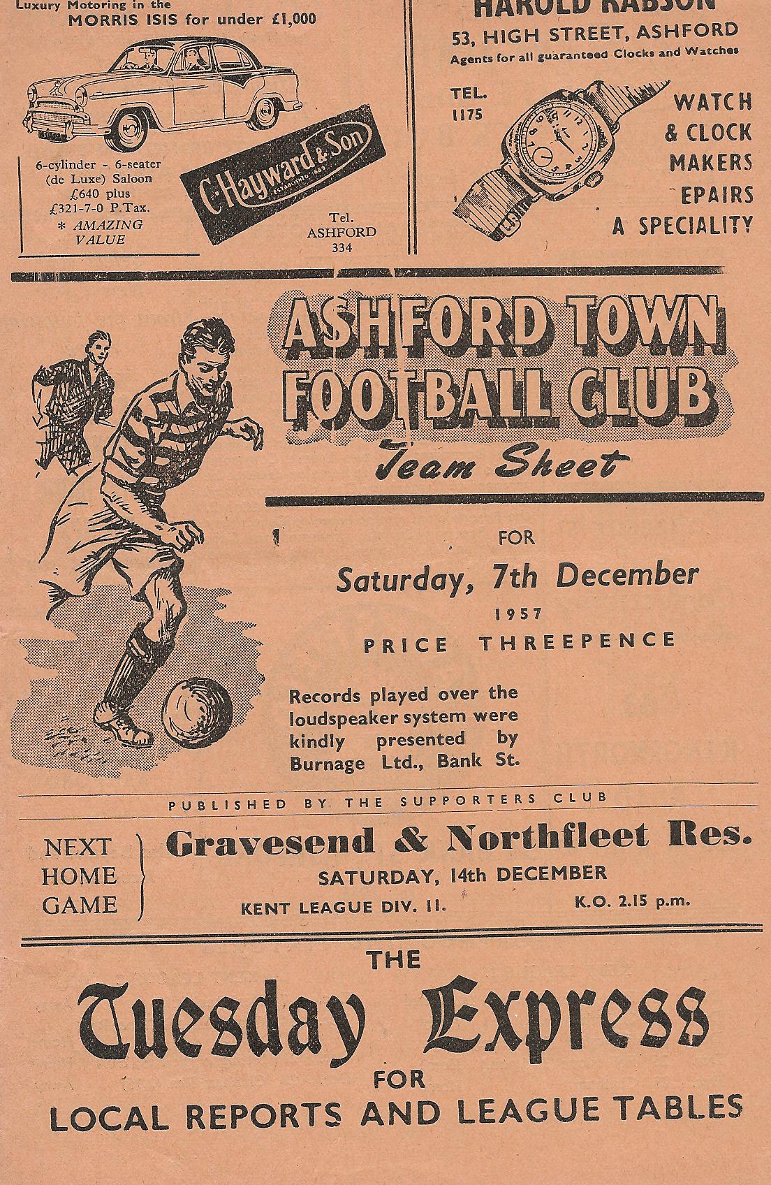 1957/58 07 Dec 1957 Deal Town (H) Kent League Division 1 5-1 508 Programme