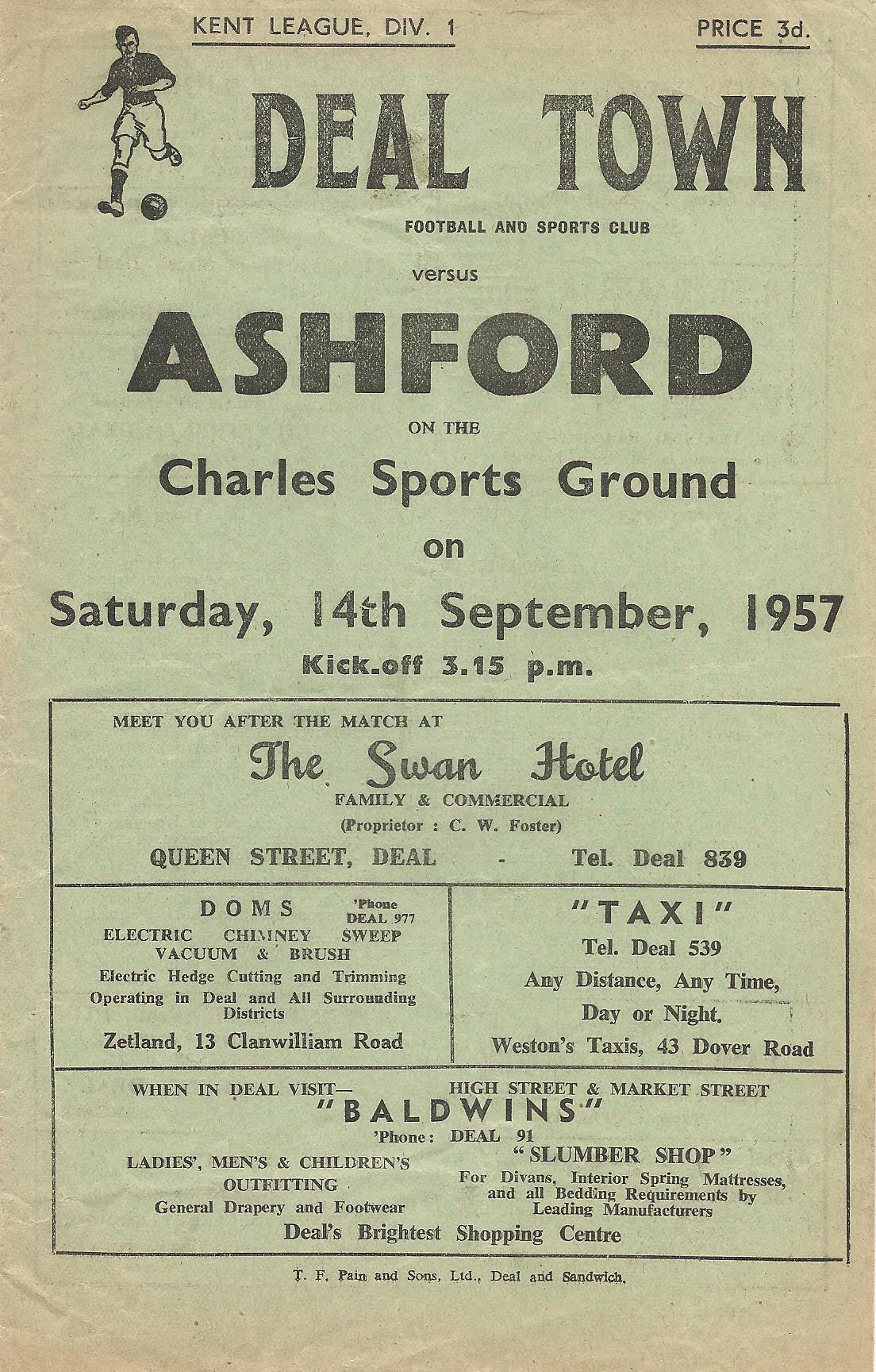 1957/58 14 Sep 1957 Deal Town (A) Kent League Division 1 1-3 --- Programme