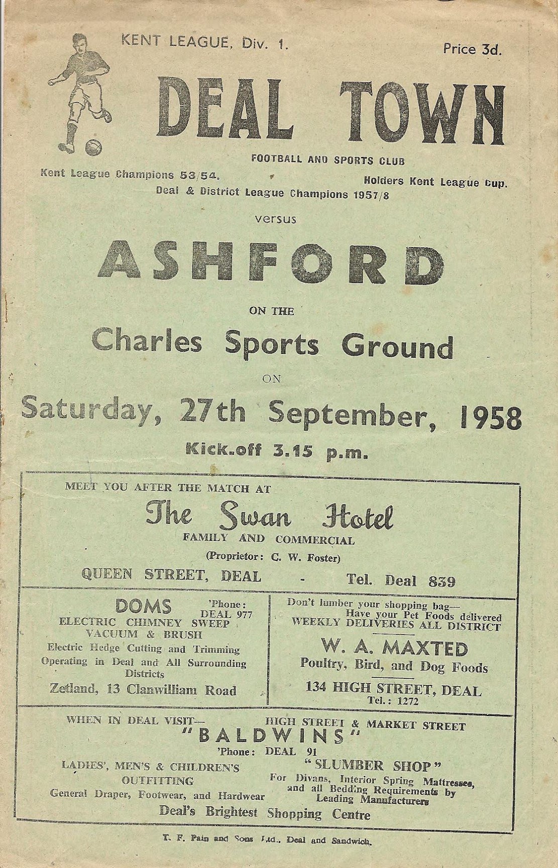 1958/59 27 Sep 1958 Deal Town (A) Kent League Division 1 5-3 --- Programme