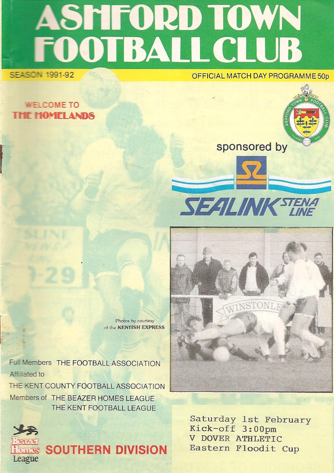 1991/92 11 Feb 1992 Dover Athletic (A) Eastern Floodlight Cup 3-7 335 Programme