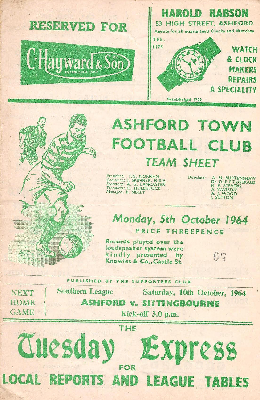 1963/64 16 Oct 1963 Dover (A) Southern League Cup 3-4 1,340 Programme