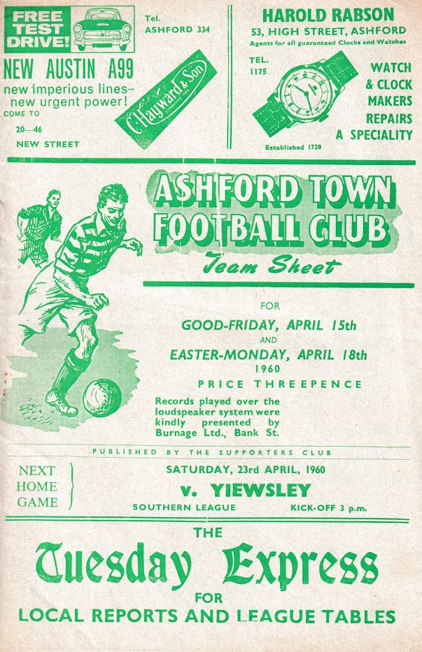 1959/60 15 Apr 1960 Dover (H) Southern League Division One 1-1 1,500 Programme