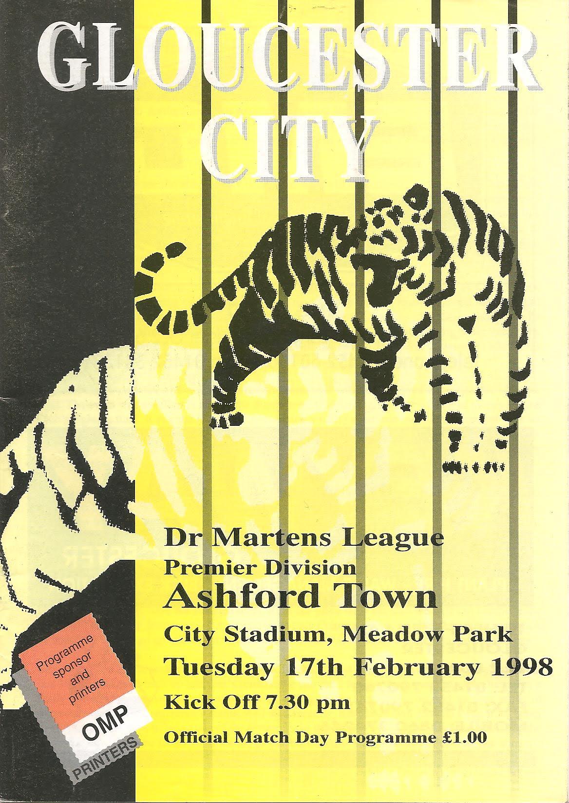 1997/98 17 Feb 1998 Gloucester City (A) Southern League Premier Division 3-2 375 Programme