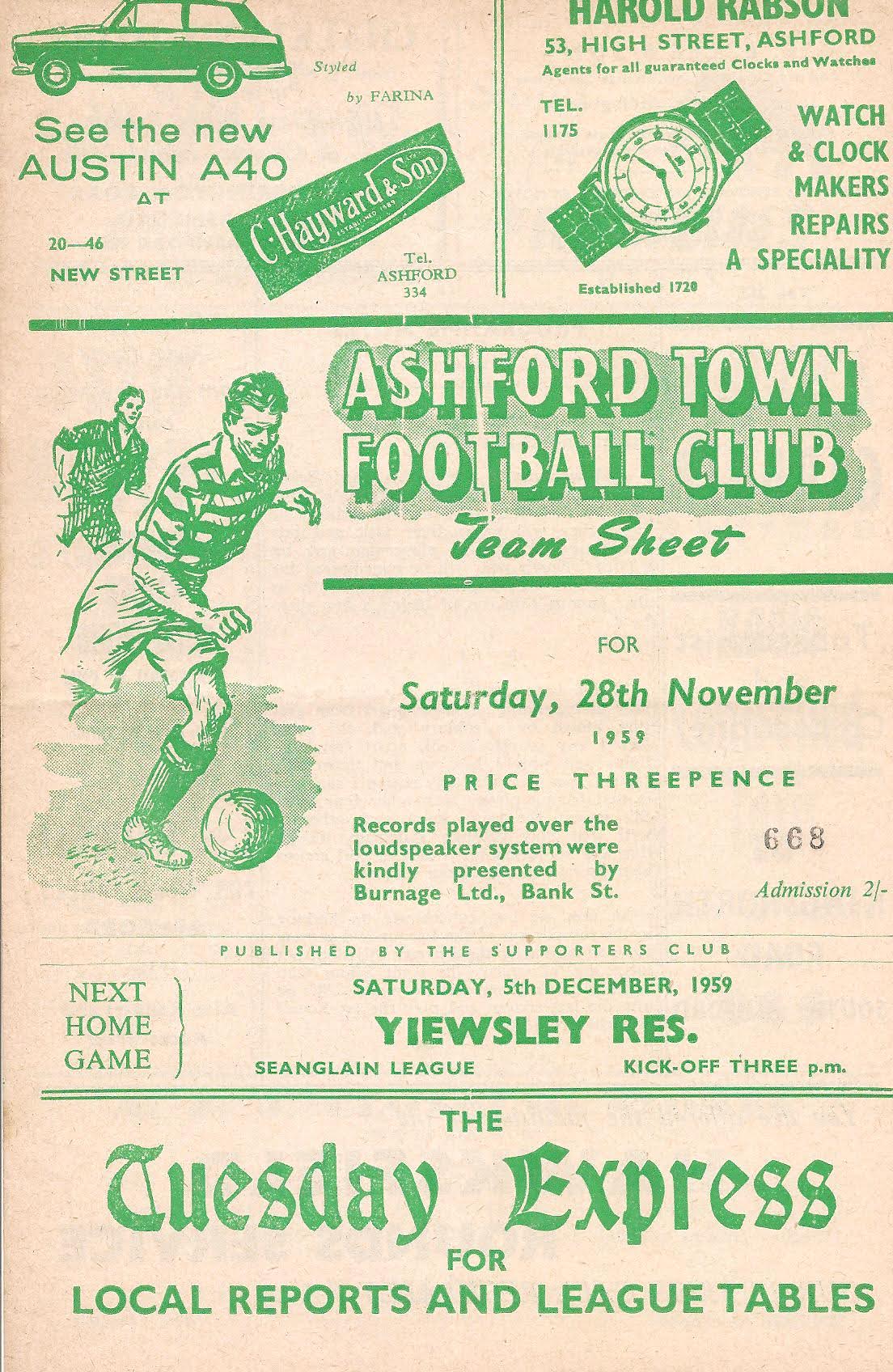 1959/60 28 Nov 1959 Gloucester City (H) Southern League Division One 2-1 1,647 Programme