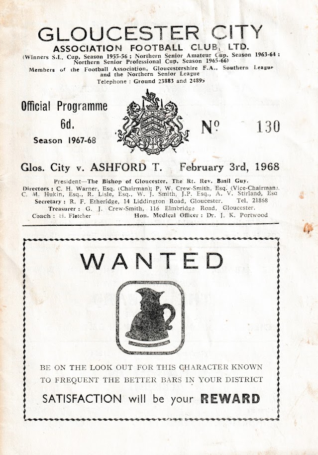 1967/68 23 Sep 1967 Gloucester City (H) Southern League Division One 3-0 546 Programme