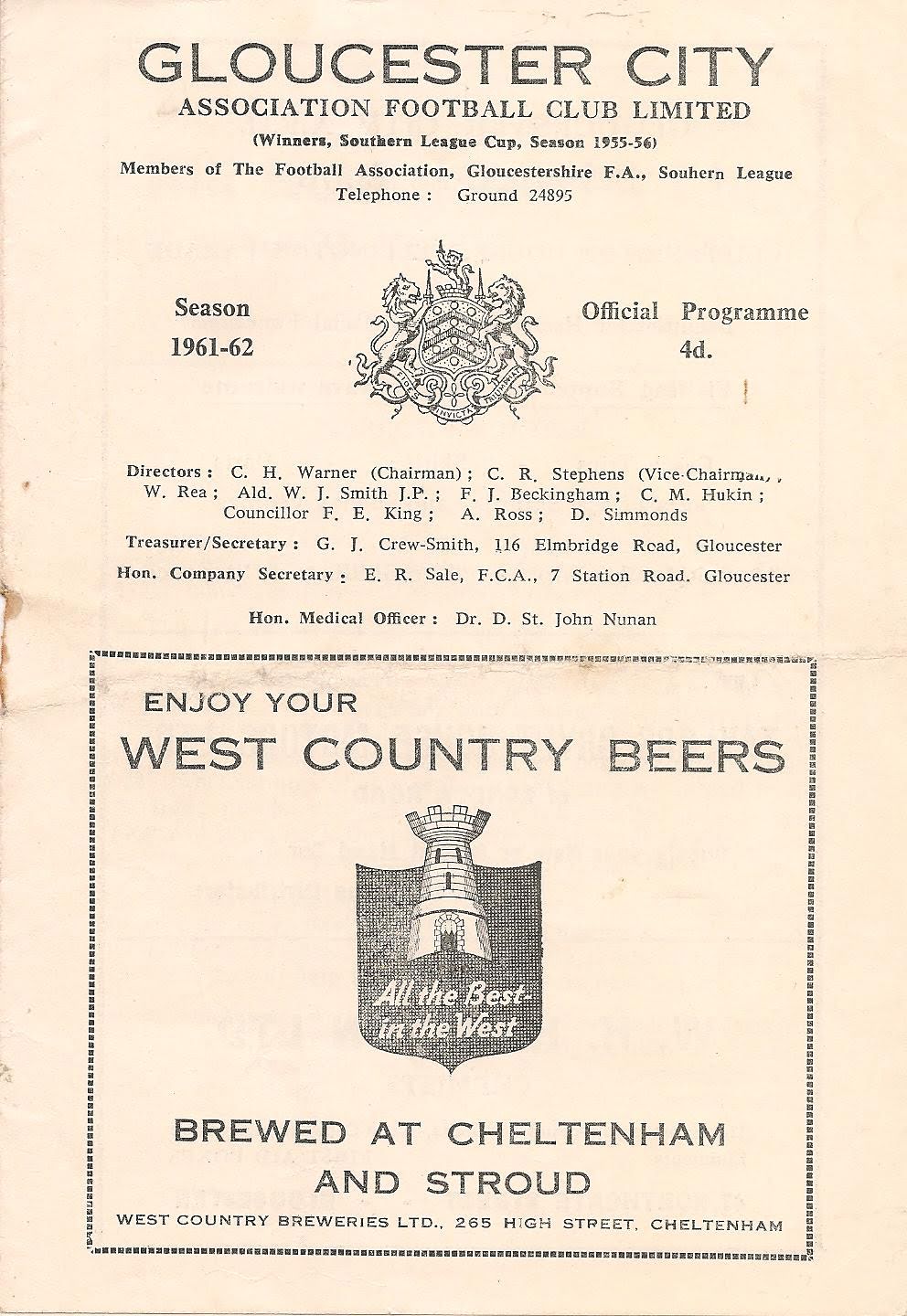 1961/62 28 Apr 1962 Gloucester City (A) Southern League Division One 2-1 400 Programme
