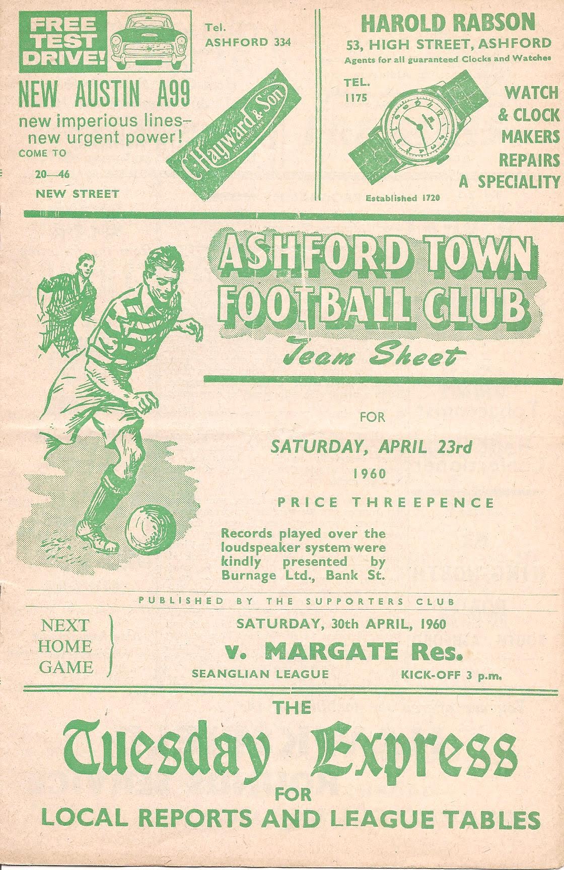 1959/60 23 Apr 1960 Yiewsley (H) Southern League Division One 2-1 877 Programme